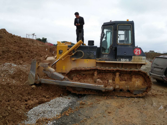 去年2月黄总承接了融水至河池高速公路罗城段,当年便购买了自己的第一台山推SD16推土机。而正是这台推土机,让黄总与山推结下了难舍难弃的情分。患难知己危机中相帮扶,每年广西会迎来雨季。有一次大雨来临之时,黄总的推土机正好在山中作业,由于所处地势较低,雨水不断上涨,推土机却启动不了,无法开到地势高的地方。眼看着自己推土机一步步陷入困境,黄总焦急万分,只好打电话向山推服务人员求助,接到求助电话时,已是晚上7点,早已过了上班时间,为了避免客户的损失,山推服务人员赵师傅与朱师傅晚上8点从柳州开了将近4个小时的车赶到了罗城黄总的工地,磅礴大雨中,山推的两位服务人员马不停蹄地开展“抢救”工作。检查线路,检查故障,保护发动机,确保机器主要部件不受雨水侵蚀,检查发现因机手操作不当造成线路短路,保险丝烧坏,经过一番抢修之后,在凌晨2点把黄总的推土机开了出来。