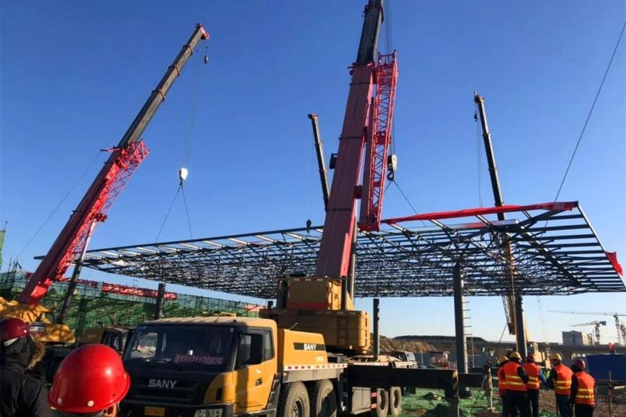图丨三一起重机正在吊装机场加油站项目